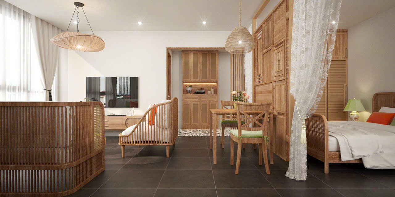 Mỗi chi tiết nội thất đều được thiết kế theo một chủ đề riêng biệt: có phòng nhẹ nhàng vintage, có phòng hiện đại tối giản, có phòng mang hơi thở Á Đông với nội thất tre nứa… giúp người thuê có nhiều lựa chọn phù hợp phong cách cá nhân.